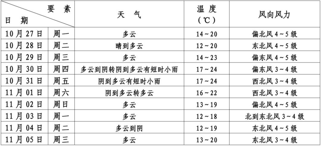 本区未来十天天气预报