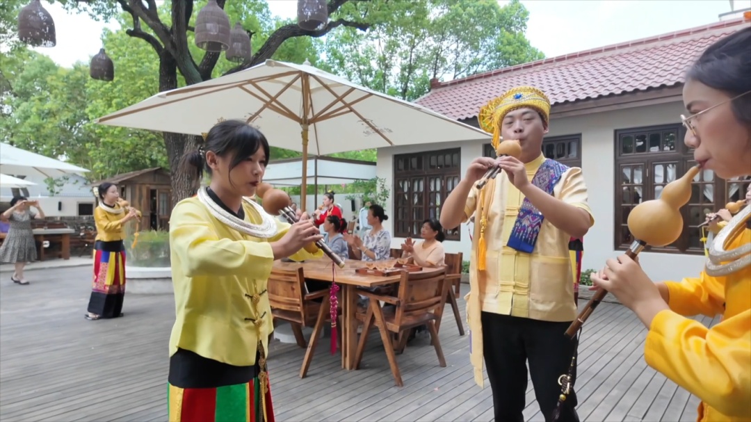 当勐卯古韵邂逅崧泽文化,葫芦丝韵律深度融入上海之源。借助沪滇协作契机,赵巷镇、梁河县携手在巷未来文化艺术中心打造葫芦丝艺术交流基地,多元拓展葫芦丝展现形式,探索非遗艺术与商业价值协同发展之路。