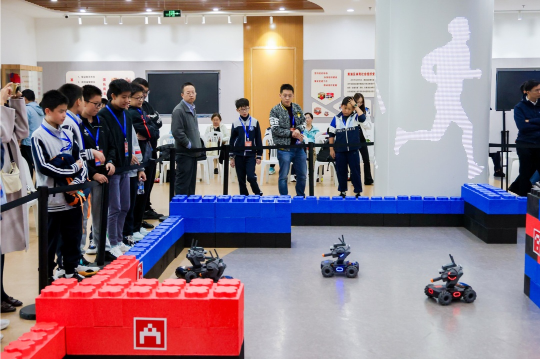比赛间歇,没有比赛任务的小选手们除了观摩同场竞技的其他队伍比赛赛况之外,还参与到2025年黄浦科技节的赛项练习当中,新兴科技体育项目因其独特的“科技+体育”新颖玩法,受到广大在场年轻爱好者的追捧。