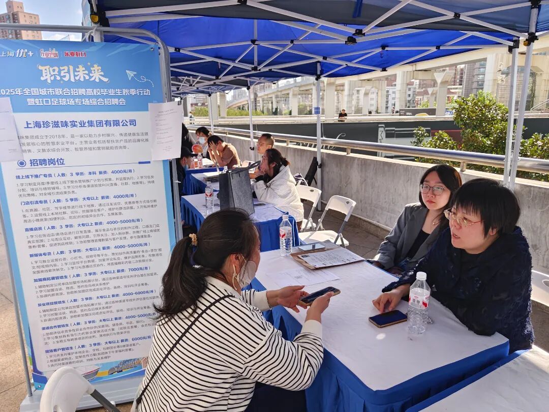 上海珍滋味实业集团有限公司带来了线上线下推广专员、直播店员、新媒体专员等岗位。“我们的岗位综合薪资大概在7000元到8000元,对求职者的吸引力还是很强的,所以已经收到好几份简历,还安排了求职者后续进行更深入的面试。”人事经理万女士表示,这样的综合招聘会非常好。相较于通过网络投递简历,企业可以在现场直接与求职者面对面交流,也可以增进双方的了解,提高招聘的效率。