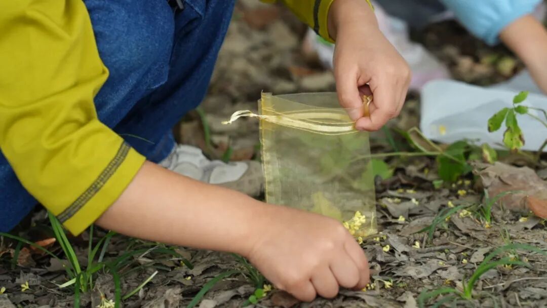 在香气馥郁的园内,上海市嘉定新城崇慧幼儿园的小朋友们在老师的带领下开展自然研学,俯身弯腰,捡拾掉落的桂花。“风一吹,花朵像雪花一样掉下来了。我很喜欢桂花,花朵是鲜艳的黄色,闻起来香香的。”魏琳霏小朋友开心地说。这些鲜桂花,将被制作成各式手工作品,让秋日的记忆随花香长久留存。