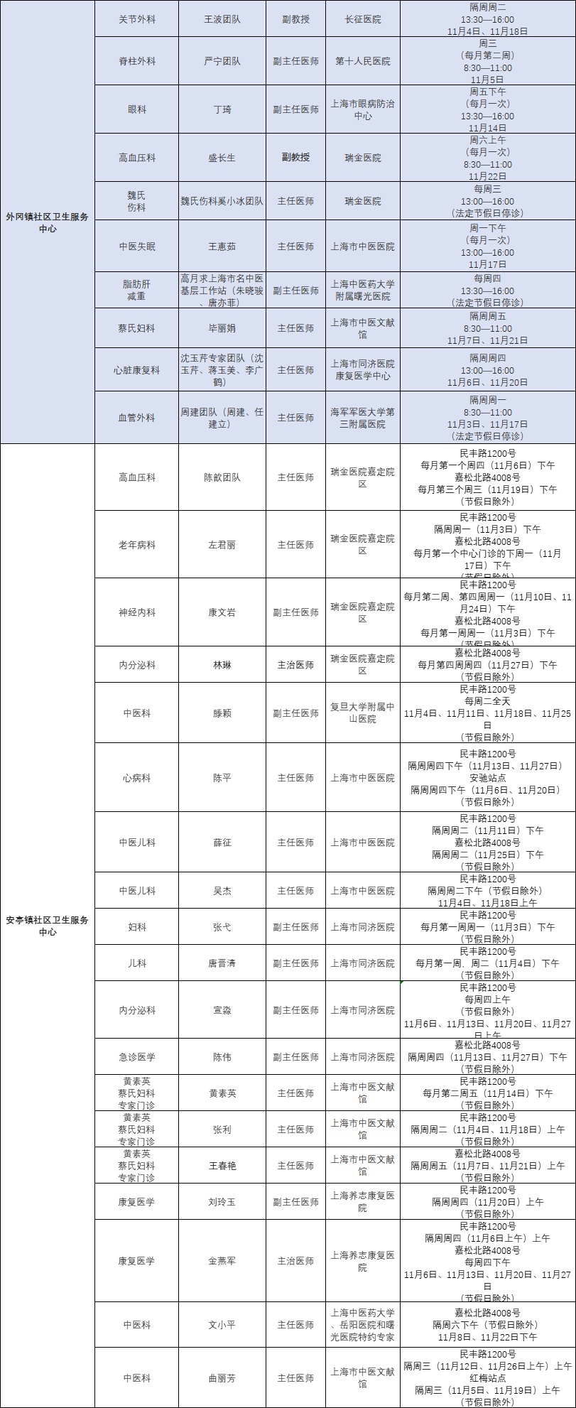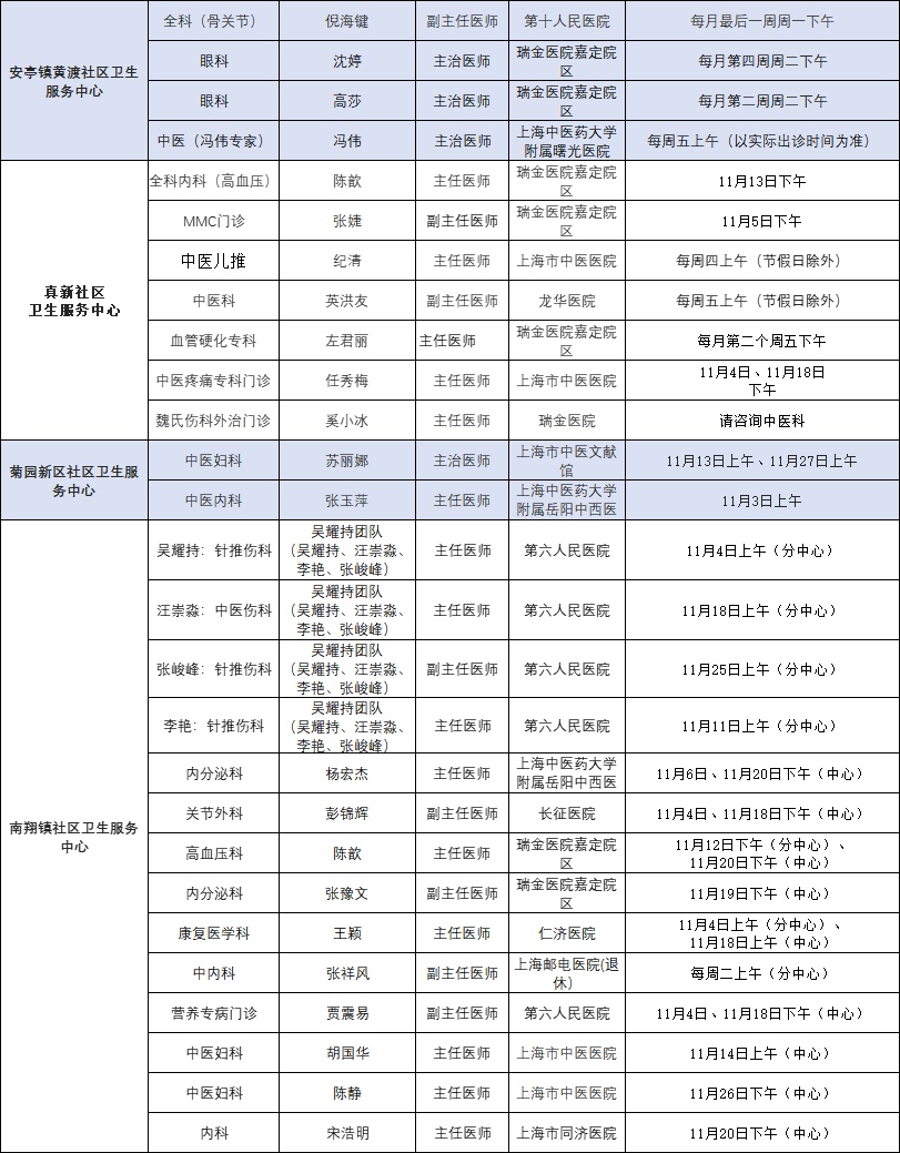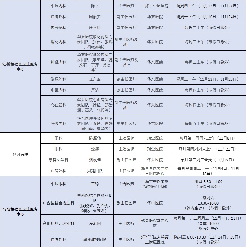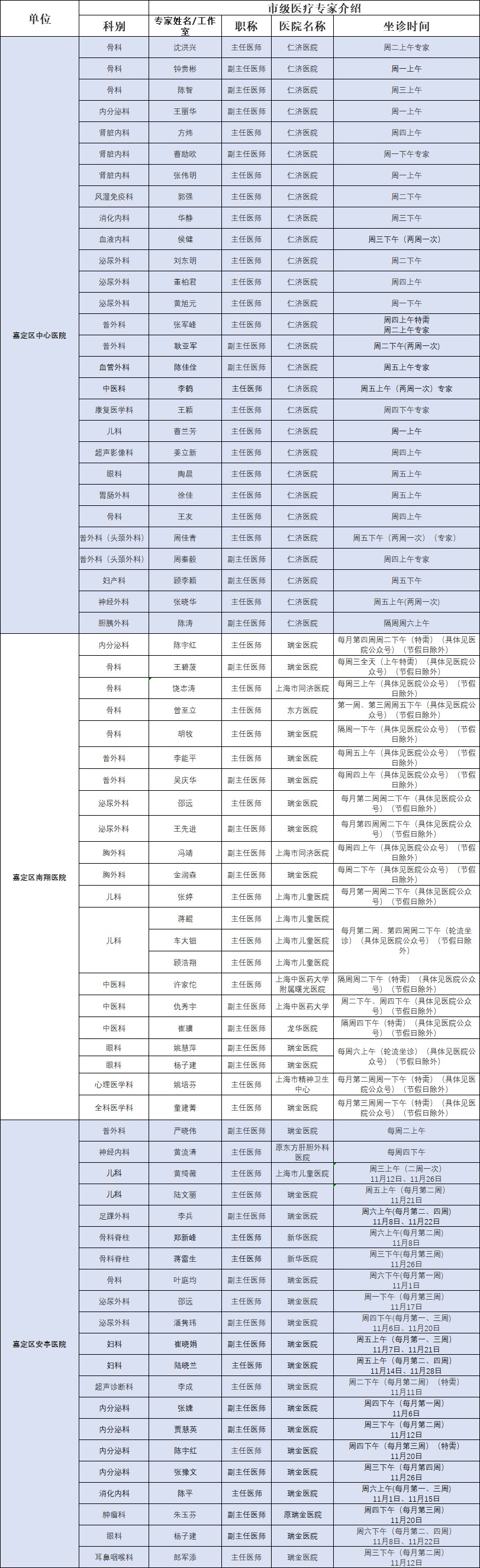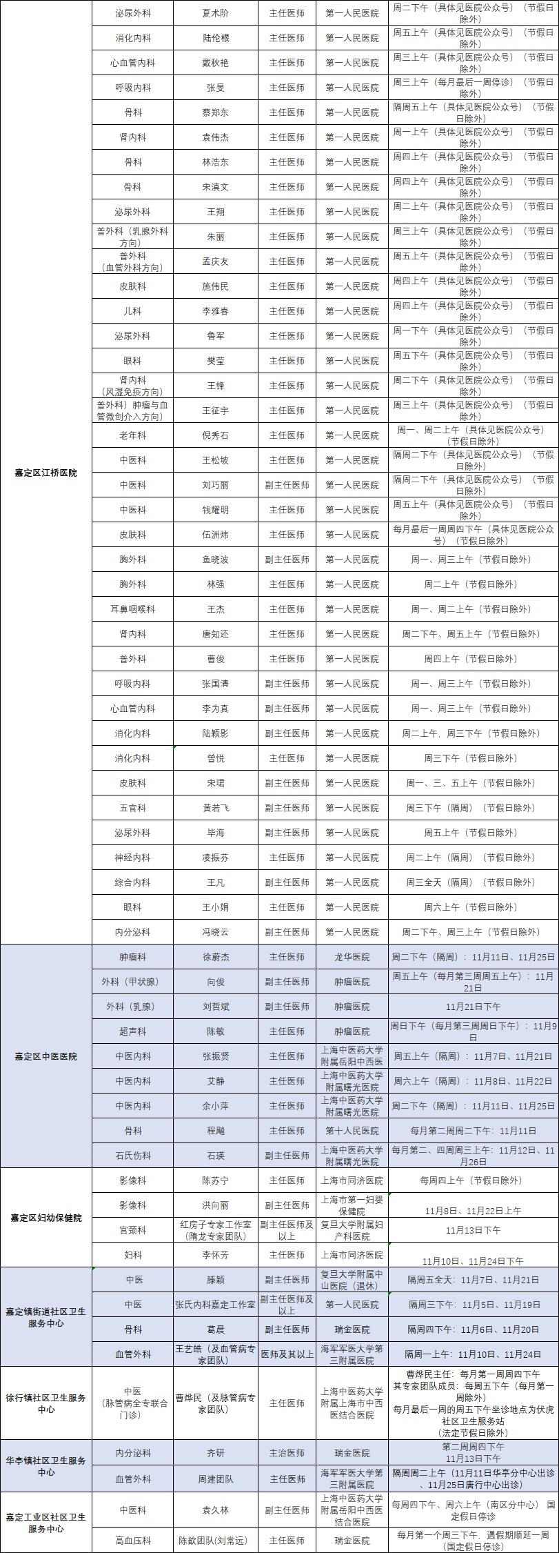 嘉定区各医院市级专家11月定期开诊安排出炉