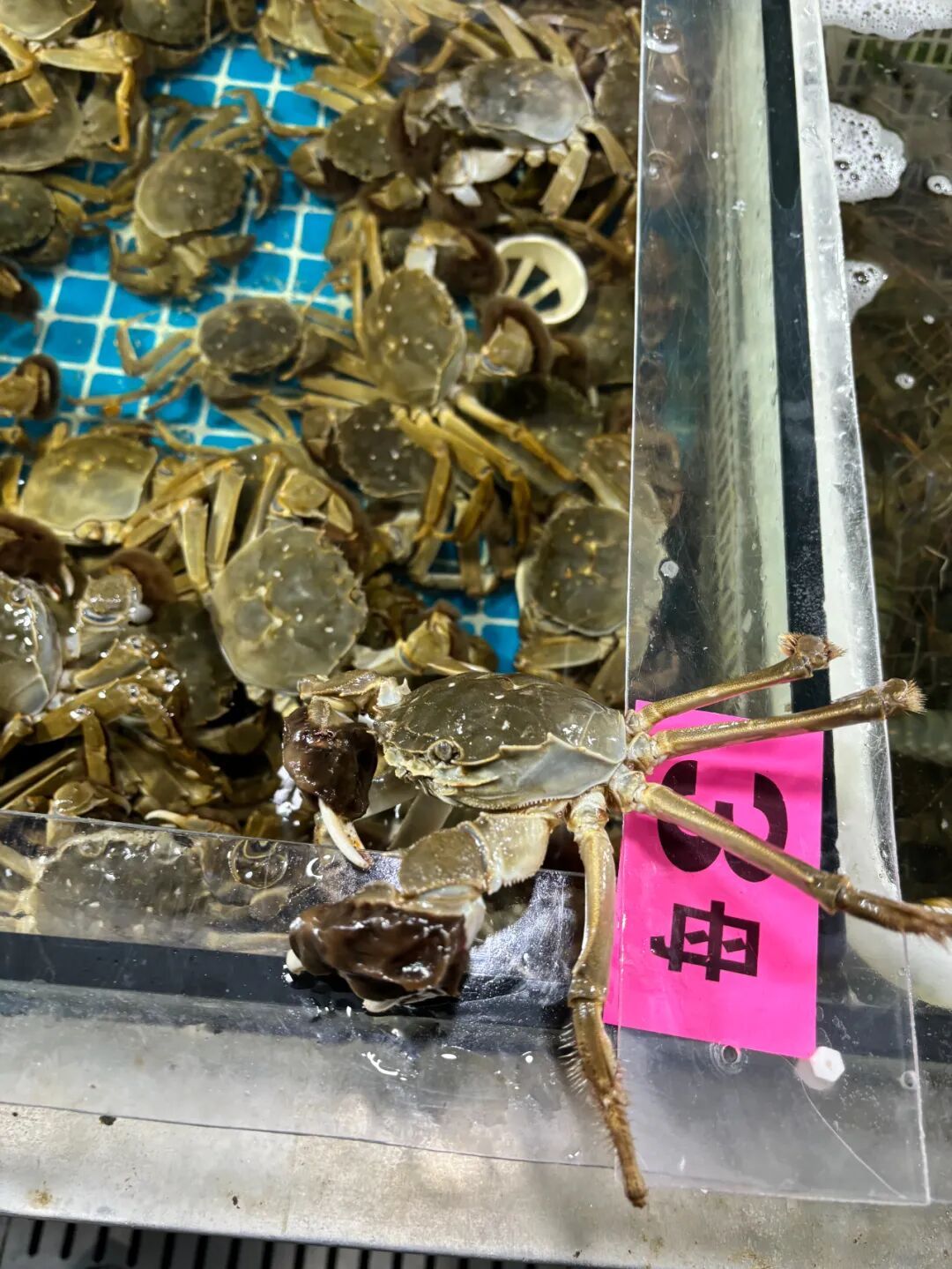 摊主介绍,由于今年天气持续高温,大闸蟹大量上市的时间也比往年延后,当下市场上大闸蟹产地主要以江苏兴化等地为主,平日销量在几十斤左右。从口感上来讲,目前母蟹比公蟹膏黄更加饱满,口味更佳。“现在主要就是吃母蟹,公蟹要等到半个月以后。”摊主谷先生介绍,价位方面,目前按照大小规格,每只售价十几元至八九十元不等,再过半个月左右,价格会有所回落。
