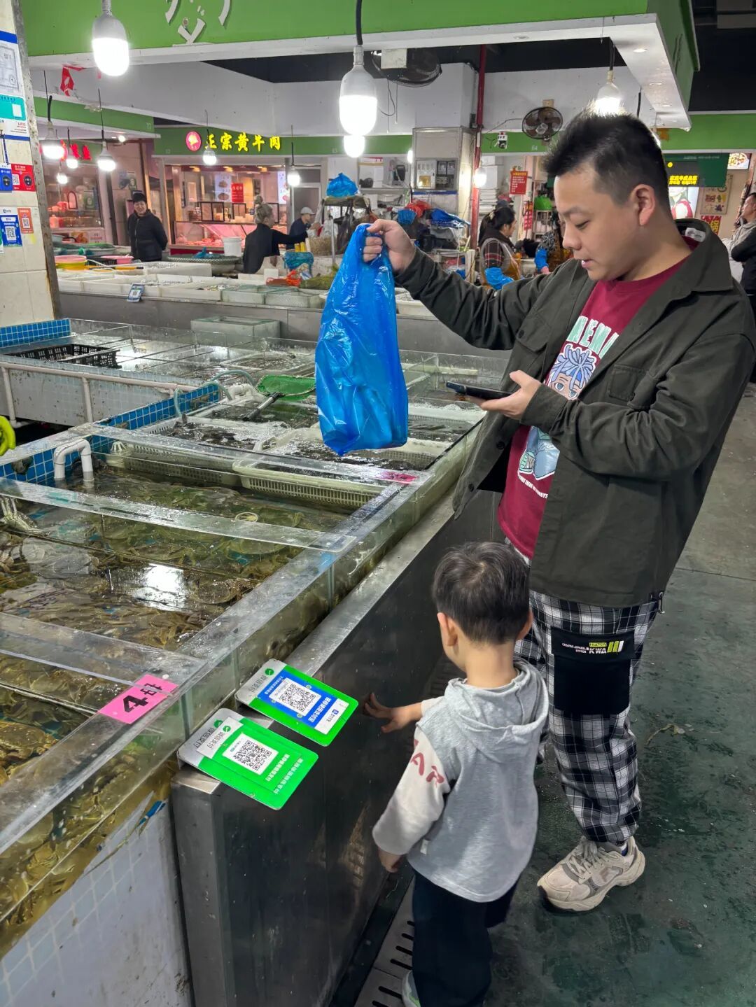 10月23日上午,记者来到松江区三辰苑农贸市场,在水产摊位上,青壳白肚的大闸蟹妥妥占据了C位,吸引了不少顾客前来选购。“现在天气凉了,螃蟹刚上市,买几只母的螃蟹回去一起吃。”市民谷先生一边挑选一边说。