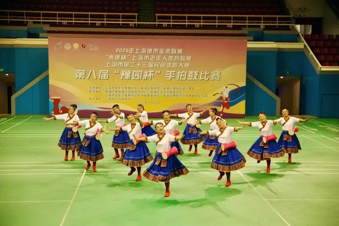近日,卢湾体育馆内鼓点铿锵,第八届“豫园杯”手拍鼓比赛在卢湾体育馆举行。作为上海民间体育领域的品牌活动,本届比赛吸引了来自全市11个区的20支社区手拍鼓队参赛,大家身着各色队服齐聚一堂,脸上洋溢着自信的笑容,一抬手、一落鼓间,用整齐的节奏、优美的动作,共同呈现出一场热闹非凡、精彩纷呈的民间体育盛宴。