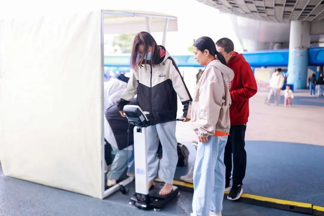 记者在现场看到,相比于一旁的健身技能展示,新设立的“体医融合体验区”人气更旺。来自专业医疗机构的运动医师团队,正忙着为居民们进行体质测试、解答疑问。