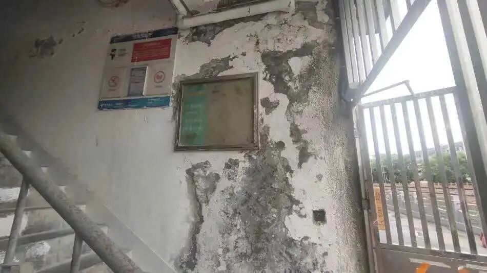 愉光新村建于1995年,几十年的风雨侵蚀让小区渐渐“失了容”:外墙老化,瓷砖时不时脱落;路面坑坑洼洼,雨天积水难行;楼道墙面斑驳脱落,小广告层层叠叠;屋顶漏水,设施老化更是常有的事。