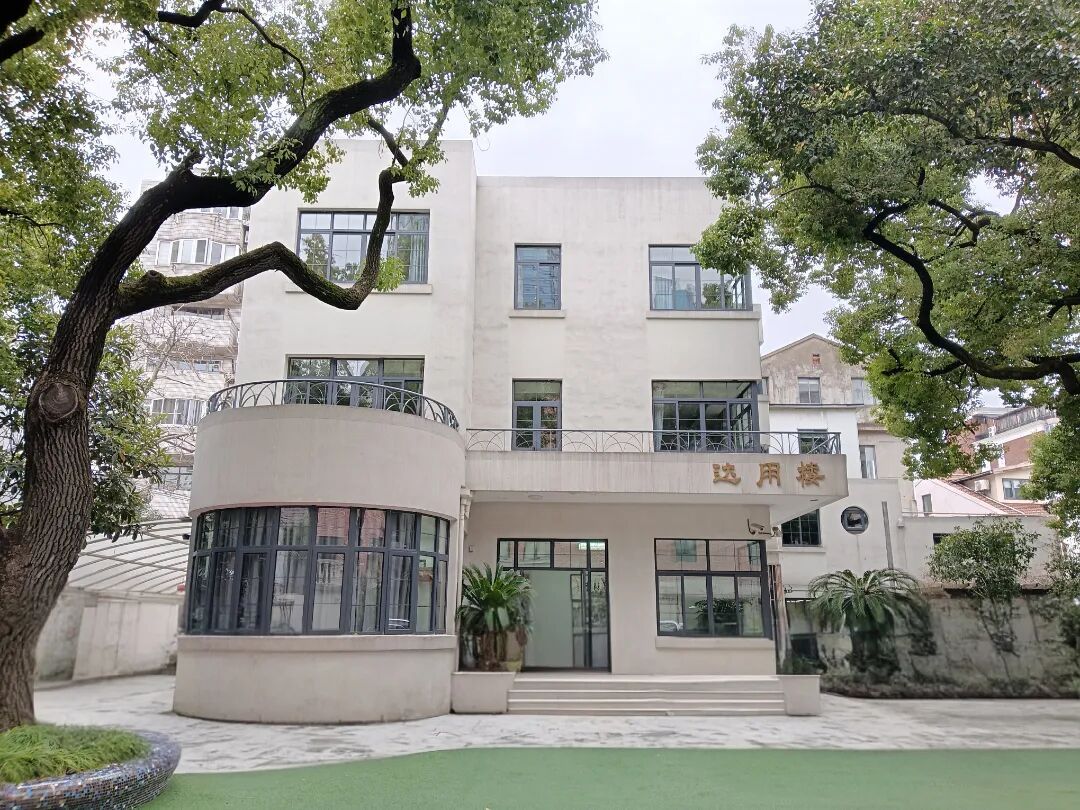 漫步校园,历史悠久的老建筑静静诉说着过往。1939年落成的正谊楼、明道楼、明体楼,由原大同大学附中二院校舍演变而来,尽显时代韵味。1936年建成的达用楼,以“L”形布局融合现代主义与花园式住宅特色,弧形入口、花岗岩台阶与草坪相映成趣。如今,这座小楼已变身谈峥工作室、鲁庵印泥传习工坊等教学空间,在传承历史的同时,焕发着全新的育人活力。