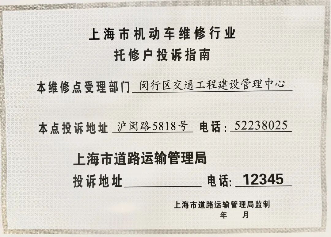 Q 如何正确选择车辆维修门店? 首先应选择取得《机动车维修经营备案证明》的企业进行维修,其次应根据故障现象,简单故障如补胎、调整润滑、更换非大灯、刹车片等安全部件可以选择沿街门店进行快修;复杂故障如发动机部件、变速箱或者转向、传动等总成部件,以及事故车辆应选择规模较大的二类维修企业或品牌授权店进行维修。 《机动车维修经营备案证明》样式 Q 维修价格如何确定? 机动车维修价格由人工费、材料费、外加工费组成,根据企业类型、规模、维修品牌不同其人工费和材料费也不同,普通门店及维修企业维修价格可以进行双方约定,但不能高于行业定额乘以备案工时单价的基准线;品牌特约维修店根据主机厂的结算系统工时单价和工时定额进行结算,但前提同样也是不能高于行业基准线以及告知具体项目和金额组成;关于维修配件分为原厂件(主机厂提供或主机厂委托第三方制造供应的配件)、同质配件(合格品牌件)以及修复件,以上均是合法可以使用的配件,但前提是需要得到确认,矛盾尤其体现在事故车环节,保险公司理赔给被保险人的事故维修金额通常在综合性维修企业不足以购买原厂配件进行维修,这就需要被保险人向保险公司进行申诉。 Q 如何确定车辆维修保养周期? 各品牌车辆均有保养周期的建议,在车辆使用说明书上会进行载明,但同时也应根据车主的实际使用场景、频率等综合因素来确定保养项目,发现问题早维修早解决,以提高车辆使用寿命。 Q 何为车辆维修质量保证期? 根据《机动车维修管理规定》关于质保期的规定:小修2000公里或10日、总成大修20000公里或100日(先到为准),企业可以自行设立质保期,但不能低于行业标准,在车辆维修质保期内,发生相同故障的企业应当进行免费返修。 Q 事故车的维修流程是怎样的?需要注意哪些事项? 车辆发生事故后,应第一时间报警确定事故责任,有责方通过报案通知车辆保险公司进行理赔查勘,现行模式下保险公司定损员会主动至维修企业上门踏勘理赔,无责方只需选择自己意向维修企业并告知对方保险公司名称即可,维修企业进行对接理赔,但也需要提醒车主,如车辆受损严重或需维修部位较多,请尽量选择自己适当熟悉的维修企业或特约维修店(4S)并参与保险公司定损环节,不要盲目选择保险公司推送的维修企业,以免造成保险公司方事故定损偏差后引发后续的维修争议。 Q 车辆养护类产品如何辨别? 车主在进行车辆日常维修保养过程中,通常会遇到特约品牌店的推荐类养护产品,例如节气门清洗、缸内除积碳、空调系统清洁、油底壳清洁等附加养护类作业项目,上述养护类项目是提高车辆的使用性和舒适性,并不是强制维护项目,车主可以结合车辆的年限、车辆状态、使用情况进行选择性的维护。 Q 车辆年检尾气不达标怎么办? 车辆尾气污染治理实施机动车尾气排放检验与强制维护制度,即I/M制度,其中“I”指机动车检验机构,“M”指具备相应资质的尾气治理维修单位;车主车辆涉及尾气不达标的可以按照检验机构出具的《告知单》上载明的查询方式选择适合的M站前去维修。需要注意的是涉及柴油车的请致电相应的维修单位问询是否有资质维修,不是所有的M站都能承接柴油车的尾气治理;前往维修单位时请携带检验机构出具的《告知单》和《上海市在用汽车排气污染物检测报告》,便于维修单位结合检验机构的排气污染物测试值精准维修,经过M站维修治理合格并上传信息至“长三角车生活”平台共享给I站后,车主至原检验机构进行复检即可。 Q 新能源车的维护与保养以及应急处置应注意哪些? 常规的新能源车维护与保养基本上包含以下内容:1.空调滤芯检查,灯光检查,刹车检查,轮胎检查,刹车油检测,四轮定位检查等;2.电池检测,电机连接线检查,充电口检查,整车电脑检测。 应急处置:新能源车一旦发生冒烟或自燃不要盲目施救,应立即弃车,人员疏散至安全区域报警待援;新能源车内一定要放置安全锤或破窗工具。 Q 品牌特约维修店的各类保养套餐及延保是什么概念? 鉴于当前汽车服务行业多家集团经营承压的现状,品牌授权店的退出风险正持续攀升。针对消费者在授权店的消费行为,特提出以下建议:在购置维护保养套餐及延保服务时,首先要核实服务采购主体,若为门店端销售或保险公司合作套餐,需充分评估门店经营稳定性,避免因门店关停导致服务无法兑现;若为主机厂直供服务,则具备跨门店履约保障,即便原购买门店经营终止,消费者仍可在其他同品牌授权体系内继续享受服务。 Q 车辆维修维权途径有哪些? 涉及本区车辆维修质量的可以拨打区行业管理部门投诉电话52238025(工作日)或12345进行投诉维权。