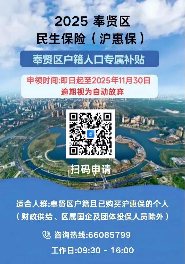 (1)本次补贴发放的范围为奉贤区户籍人口且已参保沪惠保的人员(财政供给、区属国有企业人员及团体投保人员除外)。