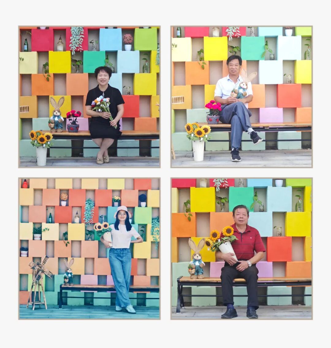过去单调的走廊外墙,如今成为了一道令人驻足的风景线,这道“彩虹”不仅是视觉上的美化,其背后更是多方心意的汇聚。今年10月,在驻村选调生陈昕怡与村两委成员提出相关改造创意后,各方积极联动。村两委成员或是变身“艺术总监”,运用AI等技术生成设计草图,或是与上海农林职业技术学院相关团队合作完成墙面彩绘。此外,更有热心村民拿出家里的废弃瓶罐装上绿萝,捐出手工编织花等工艺品装点墙面。向日葵、郁金香、百合等各式花朵在墙面绽放,墙下长椅人气渐旺,村民的归属感和幸福感也随之攀升。