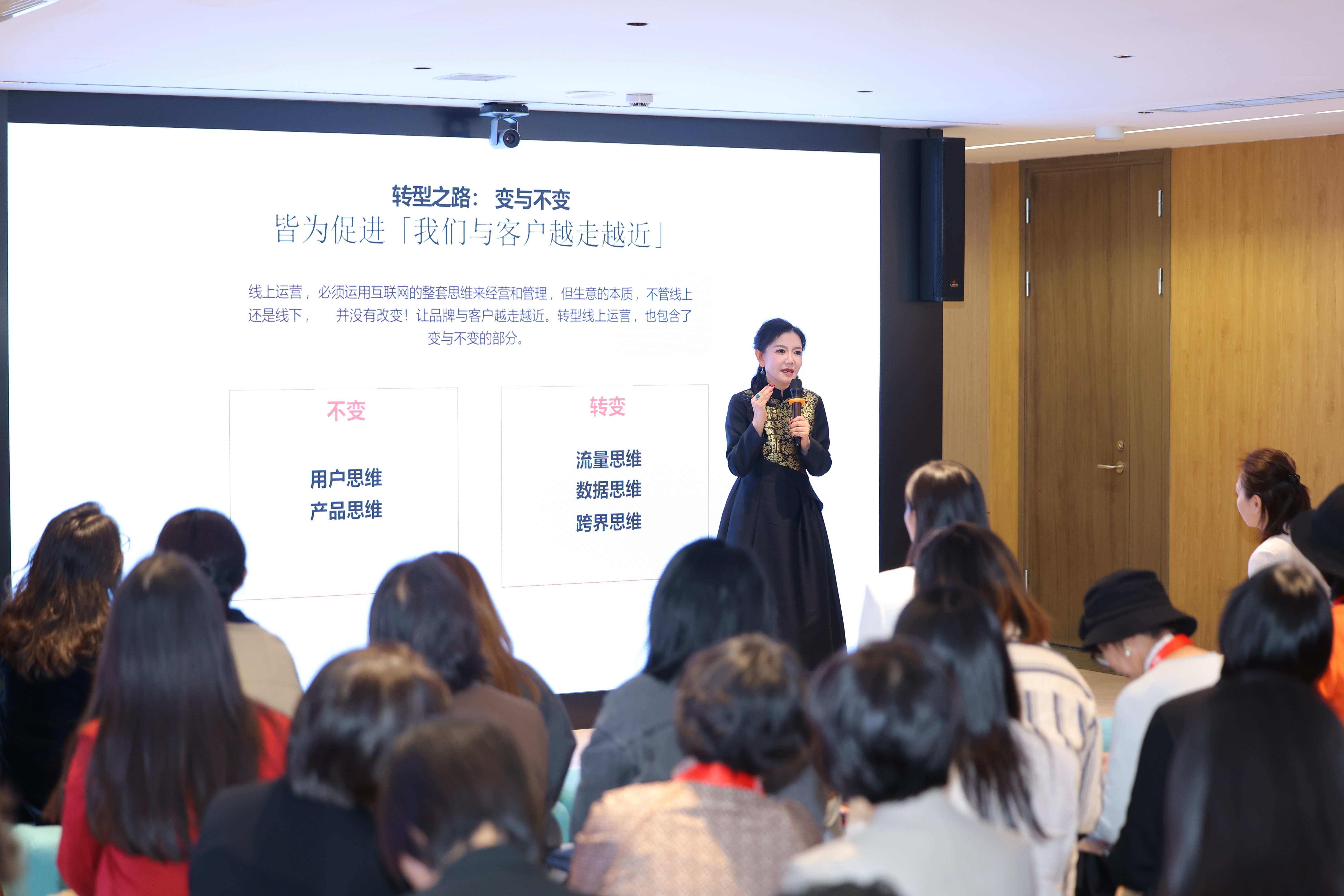 上海别出心裁服饰有限公司董事长、上海市三八红旗手邓春旭结合自身转型实践,分享了传统行业女性如何借助数智化手段打造个人美学IP,实现品牌焕新。