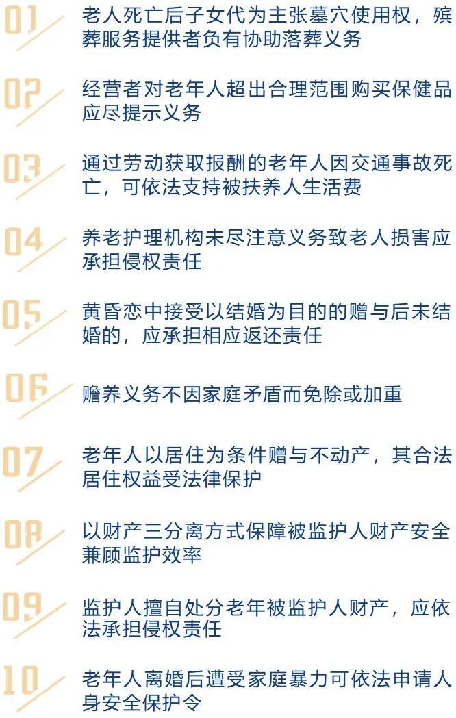 今天法院发布的10起典型案例,让人印象深刻。无论是墓穴使用权案,还是矛盾家庭赡养案,法院都充分考虑了公序良俗在老年人权益保护中的特殊作用。养老机构侵权赔偿案、超量保健品退费案等案件,则体现出法院在守护老年人人身、财产安全时的不懈努力。特别是遗嘱指定监护的案件,充分体现出法院的创新精神,“财产三分离”制度在包括但不限于“老养残家庭”等特殊场景中能发挥重大作用。这些典型案例全面覆盖了老年人日常生活中的各种烦恼,让老年群众更有安全感和幸福感。