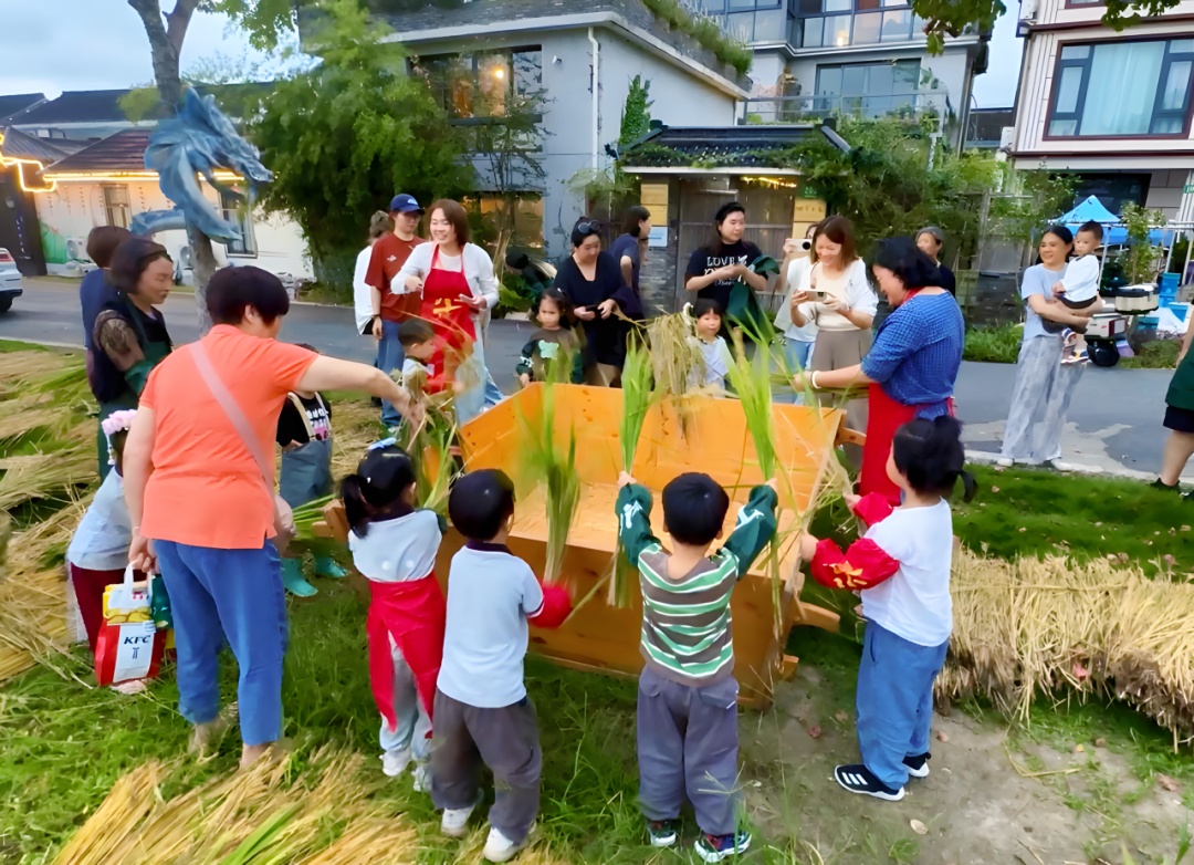 而今年的泖田艺术节更有一大突破——首次推出并强化了夜间活动板块,让乡村的烟火气在星空下延续。“星空夜市”点亮了夜晚的消费热情,“稻田露天电影”在星空与稻浪间搭建起怀旧又新潮的娱乐场景,而“稻田音乐会”则用音乐的律动呼应自然的节律,打造出沉浸式的乡村夜游体验。当旋律在夕阳下的稻田中飘扬,乡村焕发出了不同于白日的全新魅力。