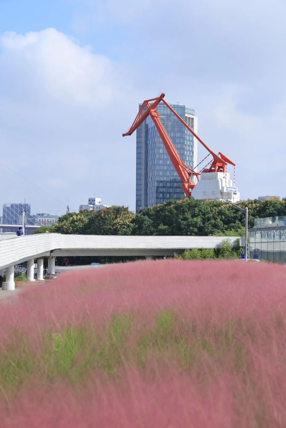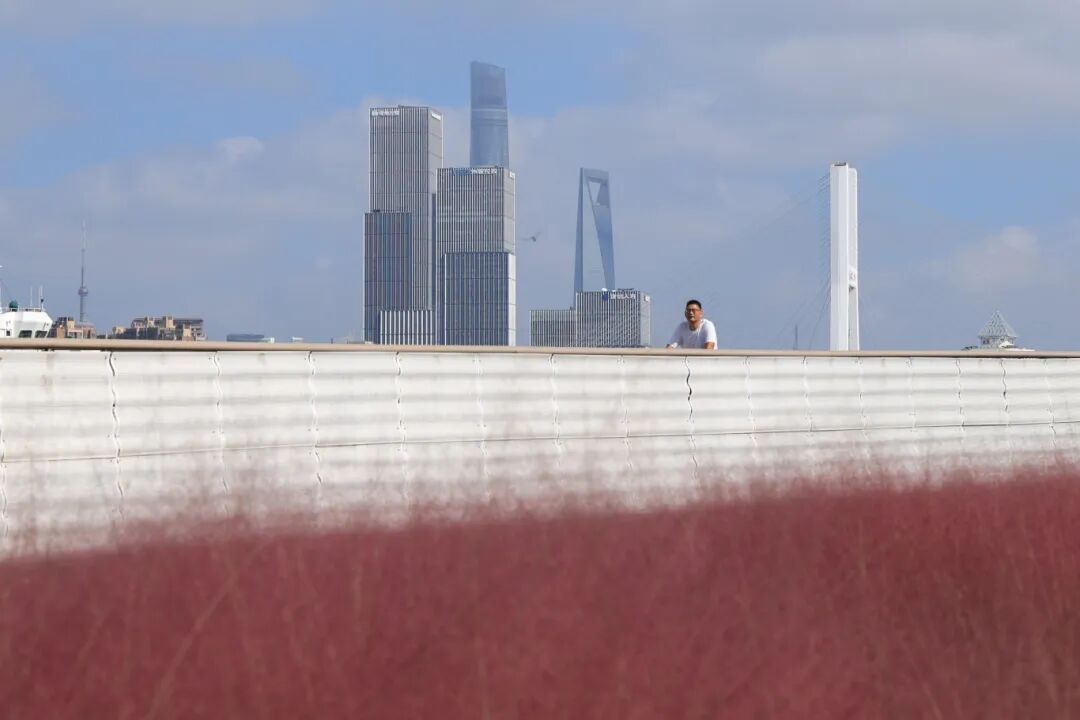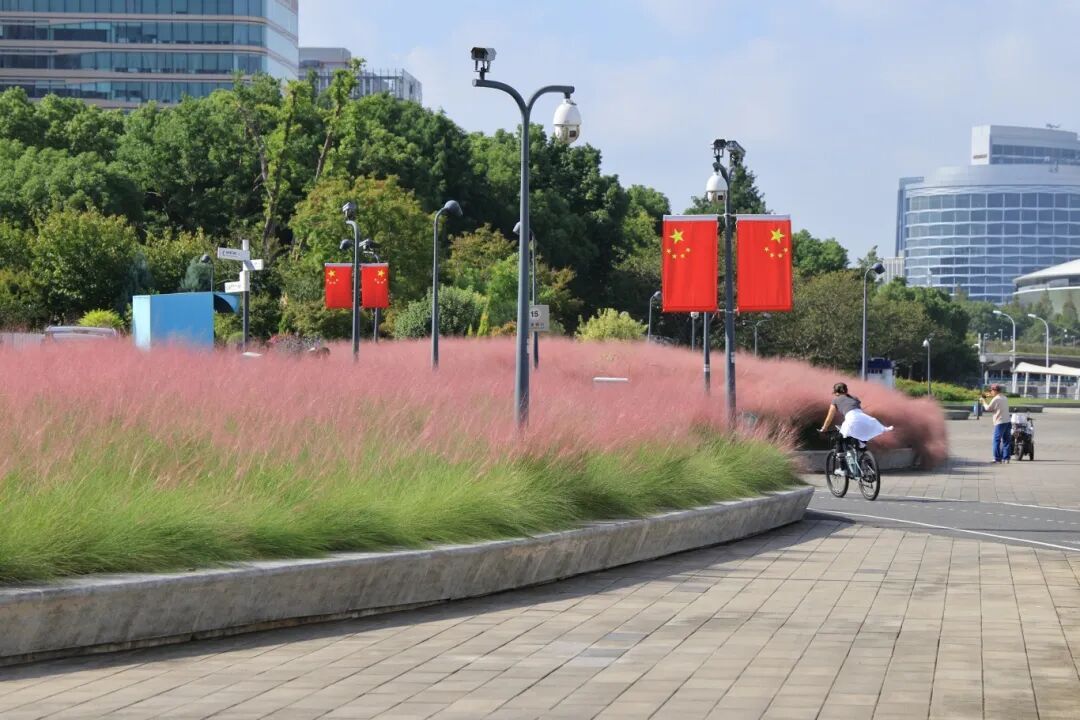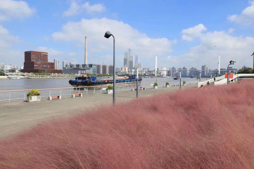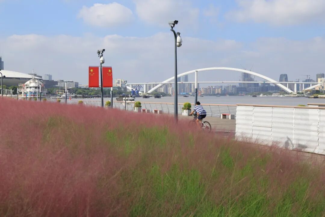 那一大片毛茸茸的粉黛乱子草,像被打翻的粉色颜料盘,又像是秋日限定的“巨型草莓味棉花糖”。微风一吹,层层叠叠的粉色波浪随之摇曳,整片江岸都弥漫着浪漫的气息!