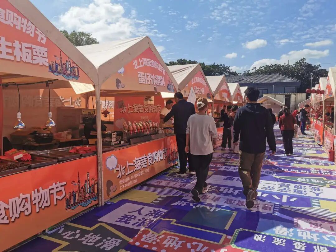 从荟品仓出口出来,广场上最新打造的国潮嘉年华暨大型美食购物节正在火热进行中,数十种娱乐项目、上百种全国特色美食、风情小吃和入场福利等让周边市民们在吃喝玩乐逛中感受久违的烟火气息。