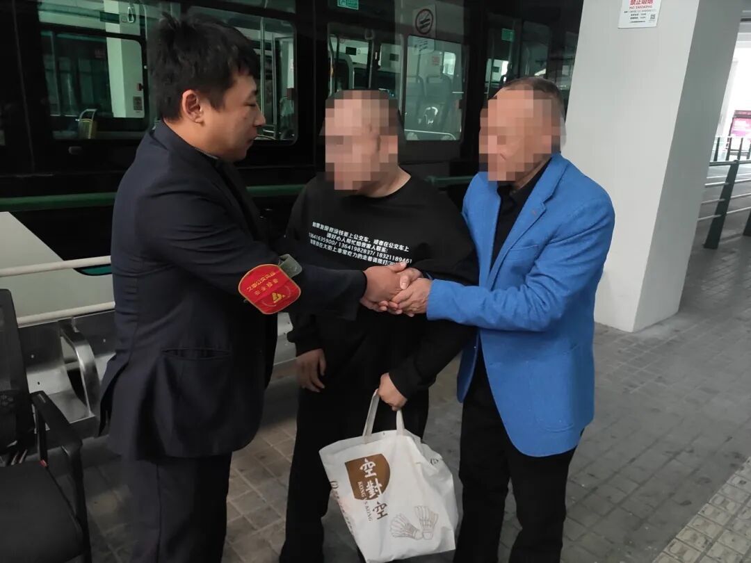 当这位父亲赶到沪太路公交枢纽站时,看到失而复得的儿子,激动地紧紧握住王永强的手连连道谢。据家属介绍,这位32岁的脑瘫患者于三天前从家中走失,由于自理能力有限,家人十分担心他的安危,连日来发动亲友多方寻找却始终没有消息。