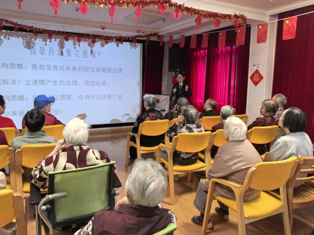 在养老院的阳光活动室里,徐汇公证处定向联系徐家汇街道的“社区公证员”杜辰以“家事公证知多少”为主题,开启了老人们关心的“家里那些重要的事”的法律知识讲座。从财产传承到晚年保障,从遗嘱订立到意定监护,杜辰用通俗易懂的语言,将看似复杂的法律条文化作生活中的实用智慧。