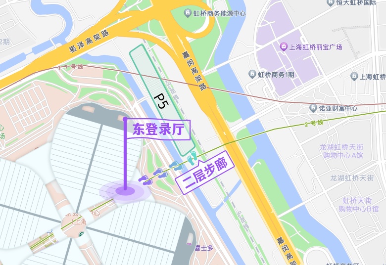 P5停车场~虹桥机场T2航站楼、虹桥火车站(出发层)