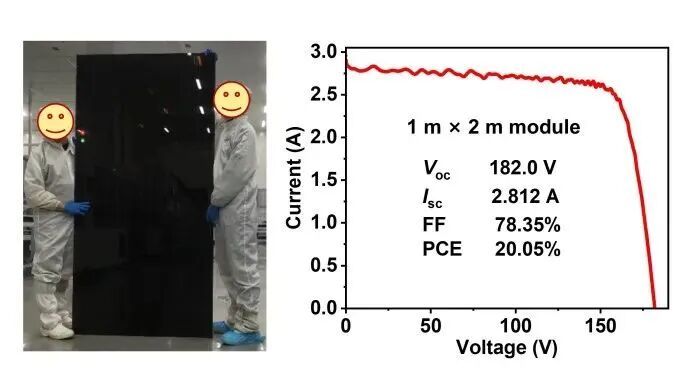 该研究创新性地提出一种“基质限域分子层”型空穴传输层构型新概念,突破了传统自组装单分子层(SAM)型空穴传输层体系中面临的分子聚集、堆叠和结晶的本征限制,创制了分子适用性广、工艺推广性高的电荷传输层新技术路径,解决了基于自组装电荷传输层的钙钛矿光伏模组制备过程中面临的薄膜不均匀、界面不稳定难题。最终,通过与宁德时代21C创新实验室合作,该研究成功实现光电转换效率超过20%的1m×2m大尺寸钙钛矿光伏模组,创造了当前该领域的世界纪录。