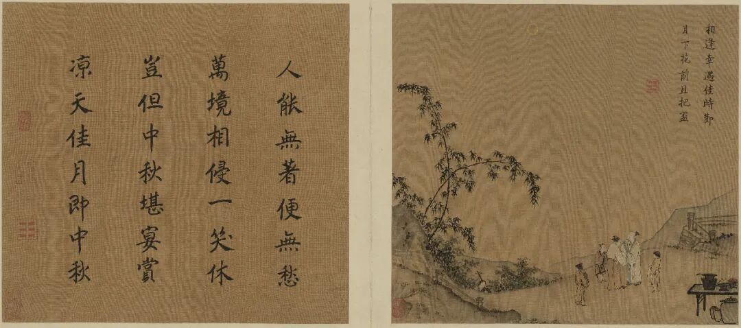 白日里的秋景秀美多姿,夜色中的秋景素雅旷落。唐代诗人王建写有名句“中庭地白树栖鸦,冷露无声湿桂花”,描绘出秋夜的静谧旷远。在这美好的秋夜,有许多人走出房屋,走向庭院、旷野,在花间树下和好友一起品茗、赏月、观花、饮酒、畅聊,此乃人生一大乐事也!