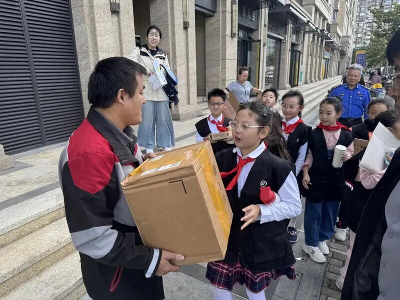 活动首创“双角色”体验模式——孩子们先跟随顺丰快递员完成揽收、分拣、派送全流程,在真实场景中触摸城市物流的“毛细血管”。随后当稚嫩的小手扛起沉甸甸的包裹,送到居民手中时,收获的一声声的“谢谢”,让孩子们深刻体会到“服务”二字的分量。这种沉浸式劳动实践,孩子们不仅将课本中的“劳动最光荣”内化于心,更在角色转换中培育了责任意识与规则意识。