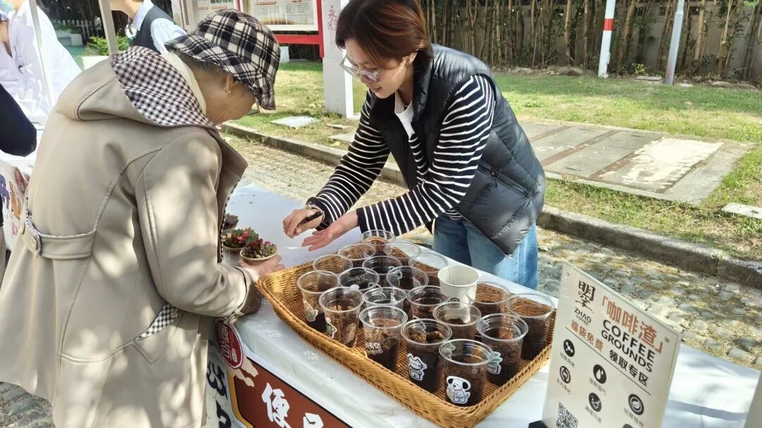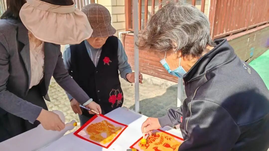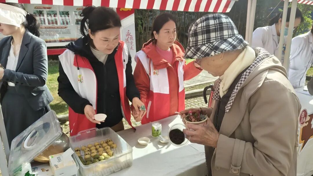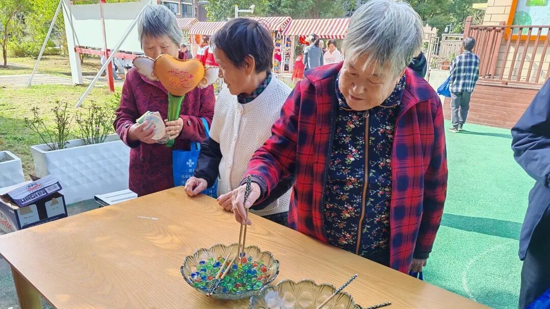 最具特色的是传统文化体验区,居民们亲手制作拓印福字,将福气带回家。“咖啡渣”福袋既环保又有创意,深受年轻人喜爱。品茶区供应着香气四溢的菊花茶和甜糯的绿豆糕,居民们一边品尝节日美食,一边闲话家常,洋溢着浓浓的节日氛围。