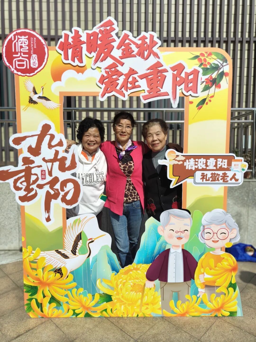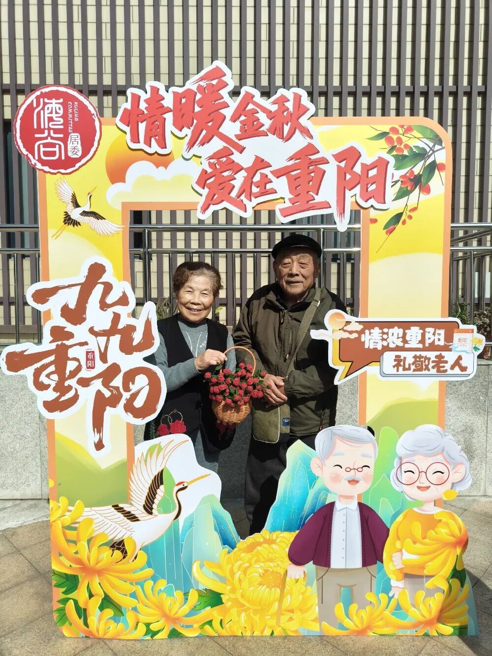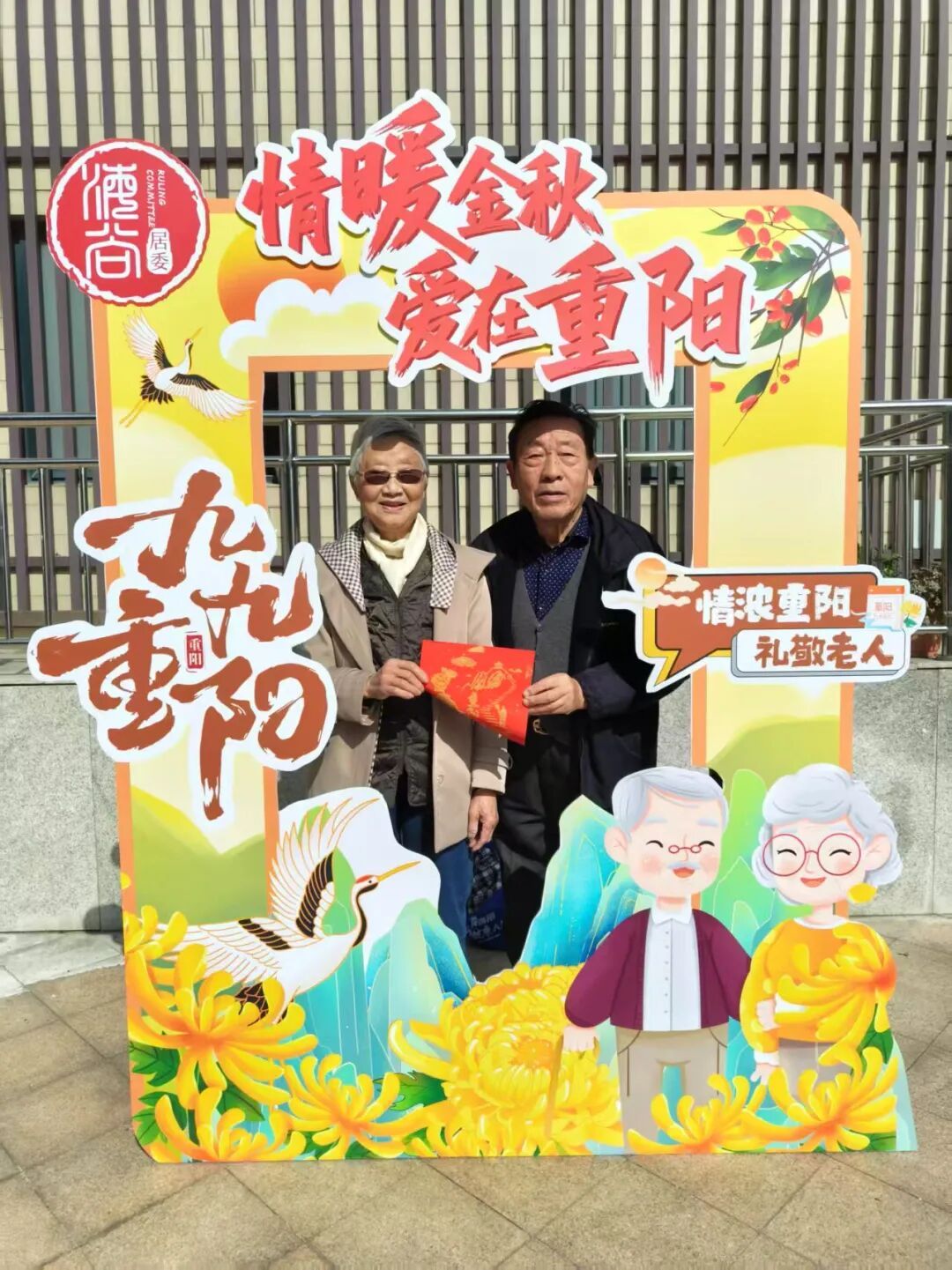 精心布置的重阳留影角成为活动现场的温暖焦点。金秋元素与节日装饰相映成趣,吸引了众多居民驻足。它见证了老年夫妇的相濡以沫,每一张定格的笑脸,都凝聚成这个重阳节最温暖、最生动的社区记忆。这些珍贵的瞬间不仅留在了照片里,更刻印在每个参与者的记忆深处。