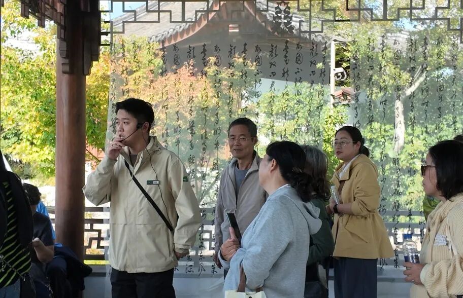 在讲解员引导下,大家漫步于申园“北山南水、一池三山”的江南园林中,细细品味盆景、石雕与宫灯艺术,沉浸式感受精益求精的工匠精神与深厚的海派文化底蕴。
