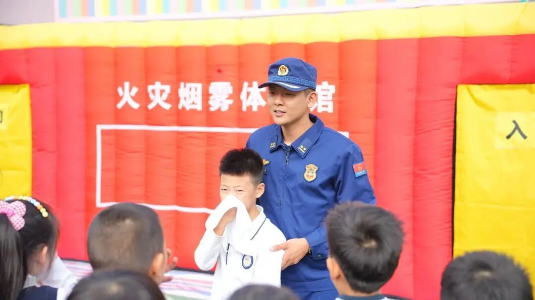 走进模拟烟房,刺鼻的“烟雾”让孩子们立刻警惕起来。在教官的帮助下,他们用湿毛巾捂住口鼻,弯腰摸索着穿过狭窄的通道。黑暗与烟雾的环境,让孩子们切实感受到了“火场逃生”的紧张感,也更加熟练地掌握了烟房逃生技巧。