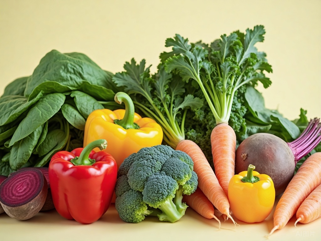 深色的蔬菜:如紫甘蓝、羽衣甘蓝、胡萝卜、彩椒。