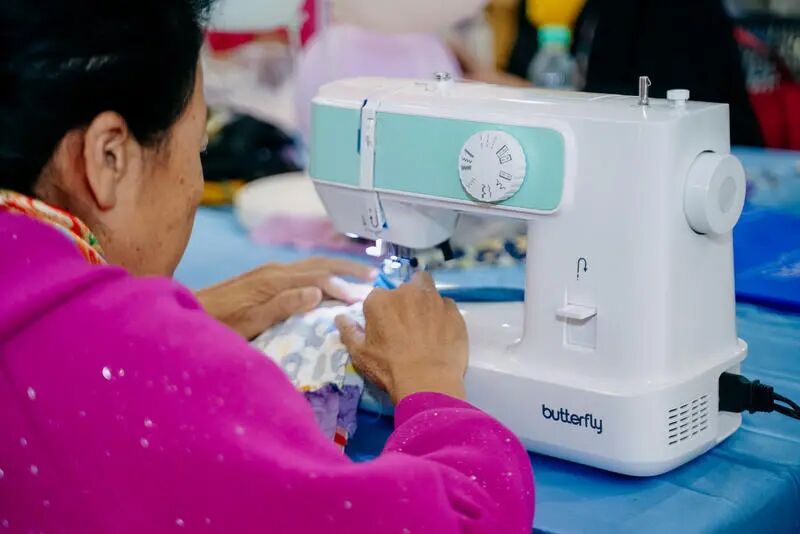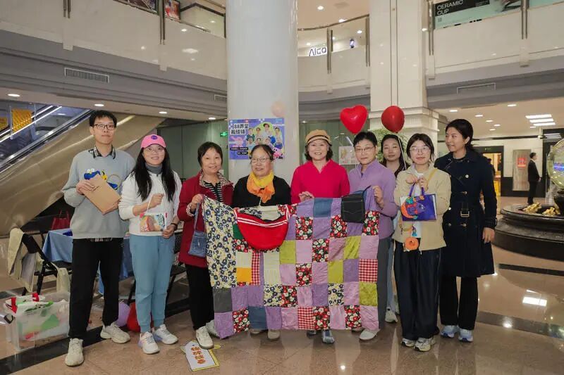 在市集现场,一台老式缝纫机和几位专注缝制的“志愿者”成为亮点。这些来自社区的手艺长者,将青年团队从居民中征集而来的零散布料,通过一针一线缝制成充满温情的“百家布”。部分成品可作为小毯或杯垫使用,不仅延续了旧物利用的环保理念,更凝聚了邻里之间的情感与记忆,展现出手作温度与社区共融的深厚力量。