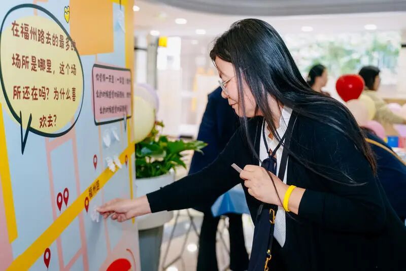 市集一侧的互动记忆墙吸引了众多市民驻足。“您在福州路生活或工作多久?印象最深的是什么?”“过去十年街区有哪些变化?”……墙上提出的问题,引导人们回顾与思考自己与这条老街的连接。