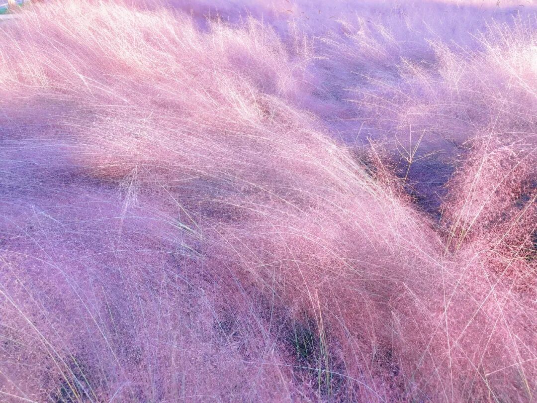 粉黛乱子草已经进入全盛期,绵软如云絮,朦胧似霞雾。