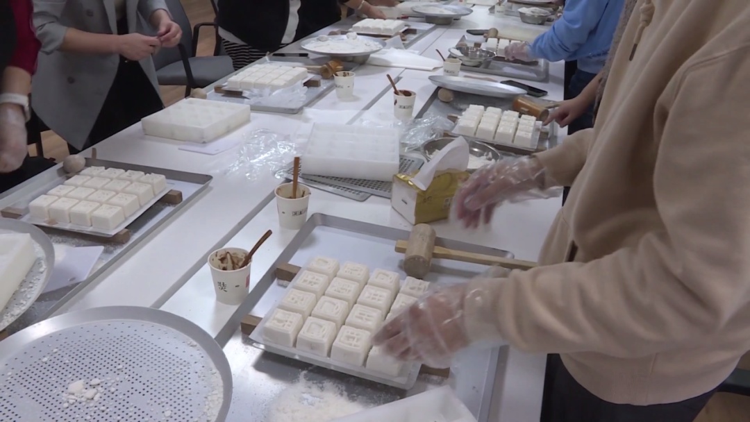 活动现场,一张大长桌旁围满了热情的居民。雪白的糯米粉、香甜的红豆沙与各式工具早已备齐。对于许多“新上海人”而言,制作正宗的上海重阳糕是一次全新的体验。在社区志愿者的耐心指导下,大家撒粉、压模、点缀,每一步都做得格外认真。“妈,你看到了吗,这是重阳糕,我自己做的,祝你重阳节快乐,身体健康。”居民李女士指着自己刚脱模的糕点,通过手机视频与远在千里之外的母亲分享着这一刻。屏幕那端,母亲的笑容慈祥而温暖:“做得不错啊。”得到了母亲肯定的李女士兴奋不已,“我们老家很少过这种节日,以前我父母还会在这一天跟亲戚朋友去爬爬山,但是从来没有做过这样的糕。”她告诉记者,母亲普通话不流利,因此常年住在老家,自己每年唯有春节才能返乡团聚,平时每天也会视频,今天能亲手做这象征团圆、长寿的重阳糕,并通过视频让妈妈“参与”进来,感觉特别有意义,这份思念终于有了实实在在的寄托,“平时很少回去,也很少见面,对他们还是很想念的,这次借着亲手做这样一份糕来表达我的心情,等下做完了给他们寄回去,让他们尝尝。”