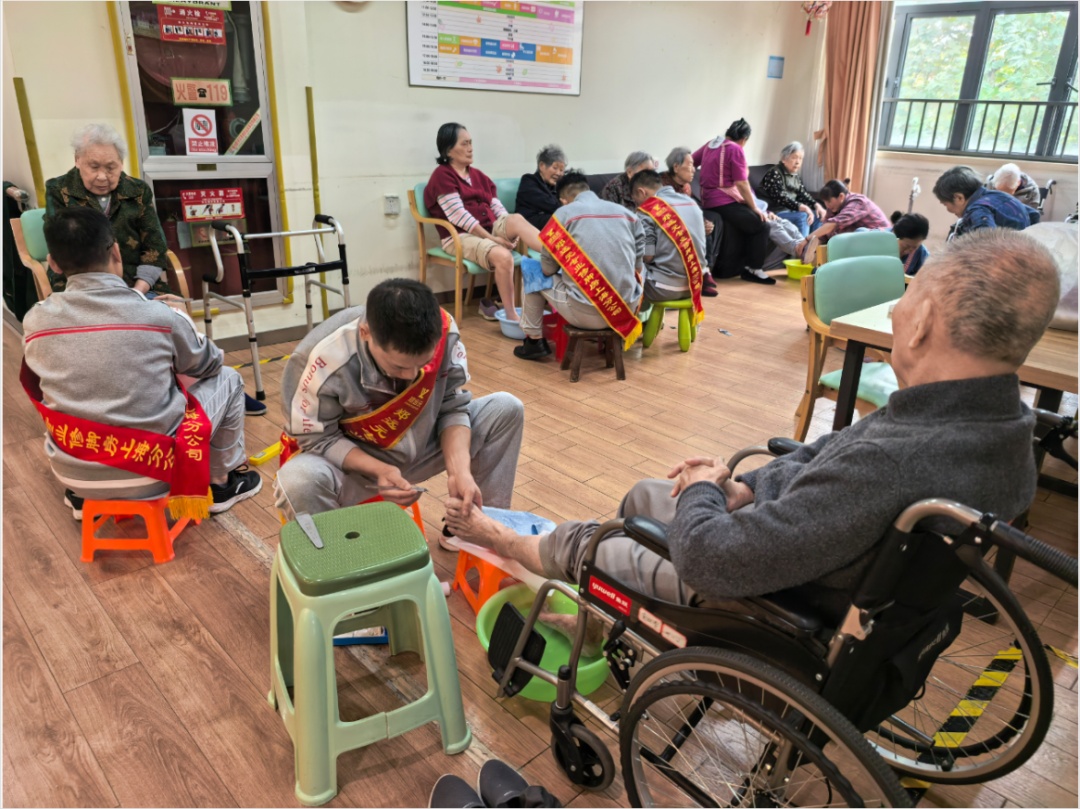 重阳节来临之际,凉城新村街道还组织民办尚外小学的学生们为敬老院老人表演精彩的文艺节目;专业修脚团队的技师们为银享长者照护之家的老人们提供扦脚服务,让老人们感受到浓浓关爱。