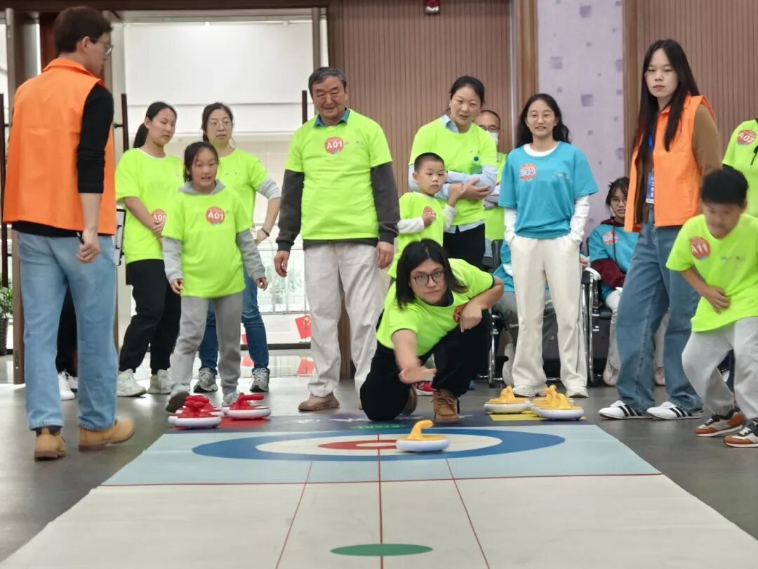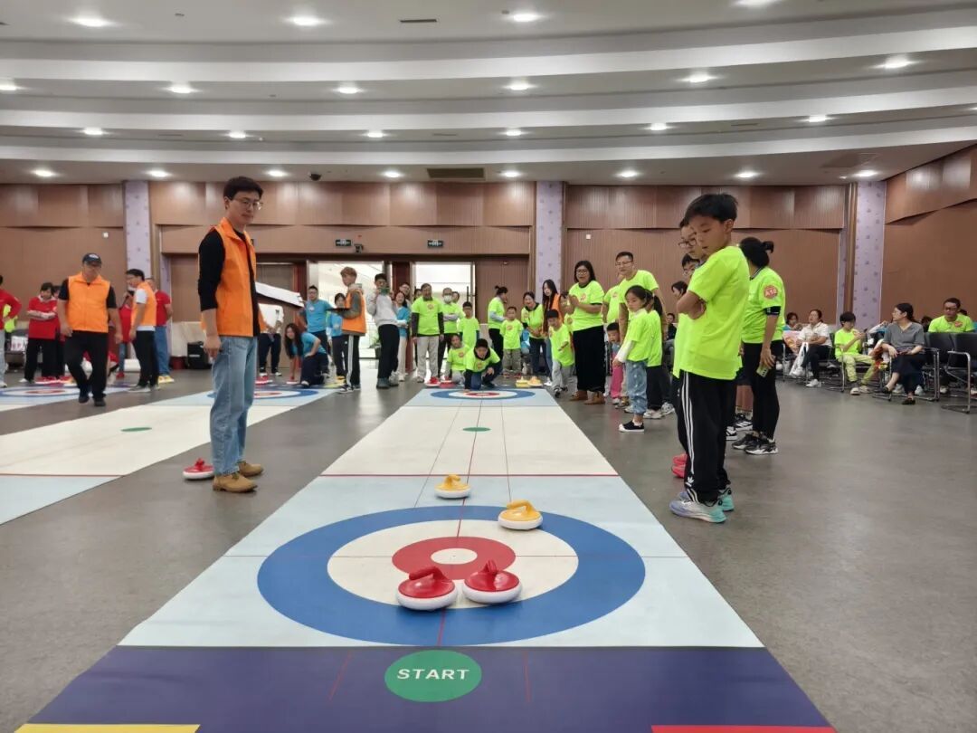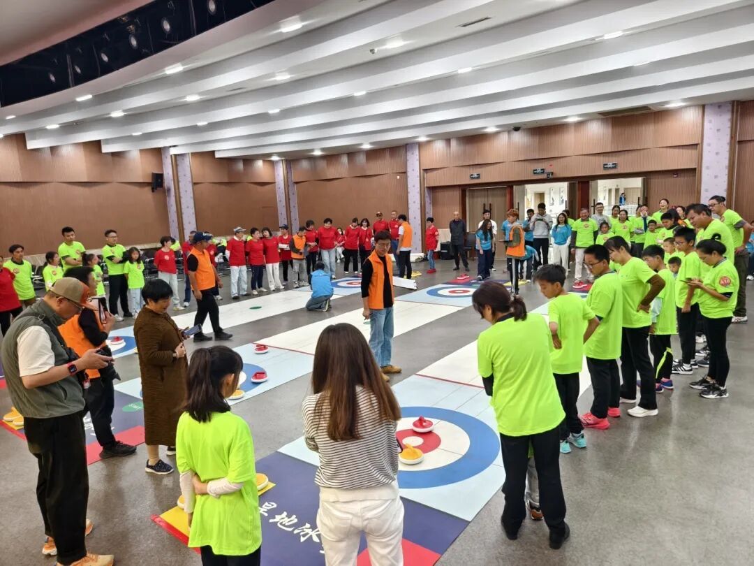 随着比赛哨声的响起,赛场即刻进入“高能模式”:青年组选手快速商讨战术、果断出手,攻防博弈间尽显活力;老年组在单人淘汰赛制中沉稳发力,冰壶精准落区时,场边喝彩声四起。最暖心的画面当数亲子组,作为“大手牵小手”的亲子组队对抗赛,家长掌心贴住孩子的手共握推杆、轻声指导,孩子投壶后攥着家长的手紧盯赛道,就算是出现了偏差,也会笑着互相鼓劲,投完冰壶之后还会收获一个温暖的拥抱。在这个赛场,参赛者掌心相触的温度与并肩作战的快乐,绘制成了一幕幕动人的风景。