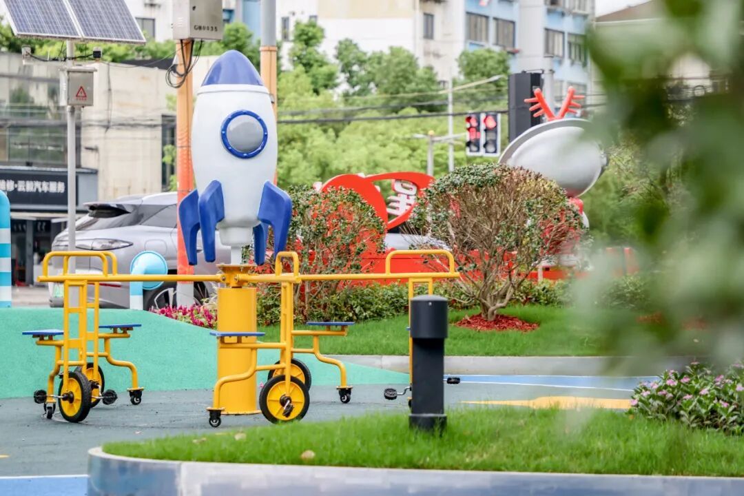 古美儿童友好公园位于古美路街道平南路莲花路西南角,是由原古美人口文化公园改造而成、占地约3470平方米的城市街角公园,以“星海童行”为主题,既植入星际探索与中国航天元素,又兼顾老年运动与林下休闲需求,为周边居民打造了全龄友好的公共活动空间。