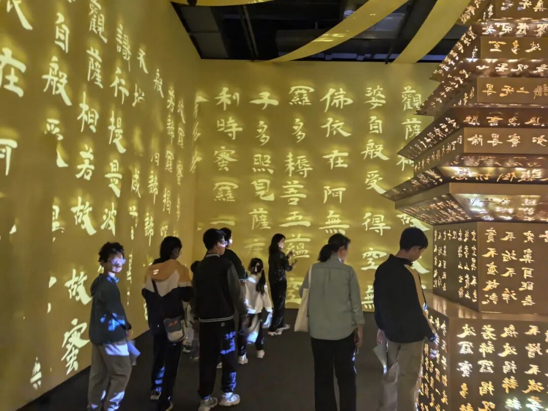 在展厅中央一幅巨大的《飞天乐舞图》前,琪琪拉着妈妈的手驻足良久问到:“妈妈,为什么这些飞天的姿势这么优美?她们手里拿的是什么?”孩子的好奇心引发了家庭成员的热烈讨论。在专业讲师的解说下,琪琪母女俩了解到,飞天舞者手中的乐器正是敦煌壁画中经典的“反弹琵琶”,这一姿态不仅展现了唐代乐舞的精华,更体现了古代画师丰富的想象力。孩子们随后模仿飞天姿态拍照留念,在互动中切身感受了千年艺术的魅力。
