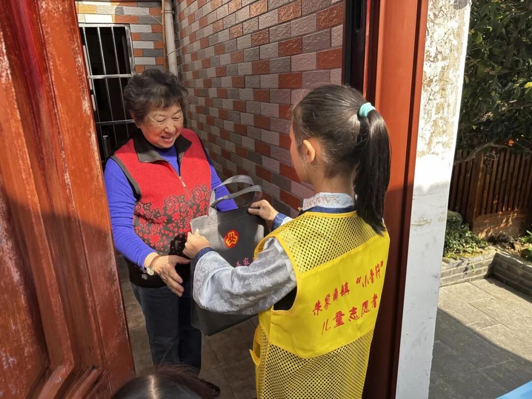 重阳节的温暖也在代际间传递。近日,镇妇联“小音符”儿童志愿者们联合多个居委会,在古镇开展重阳志愿行动。孩子们手捧重阳糕,走进老街巷,将甜蜜的祝福和清脆的问候送到长者手中。随后,他们又化身“美丽庭院”小小宣传员,走进商铺倡议文明,用纯真童心担起了孝亲文化与文明新风的传播责任。
