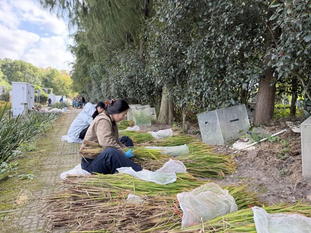 清晨,田埂上的晨露还未干,上海交通大学农业与生物学院农业生态课题组的几位研究生已早早来到水稻田。他们戴好手套,压低草帽,俯身走进田间。晨光洒落,他们忙碌的身影与金黄的水稻相映,洋溢着蓬勃的朝气。