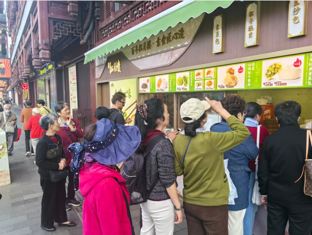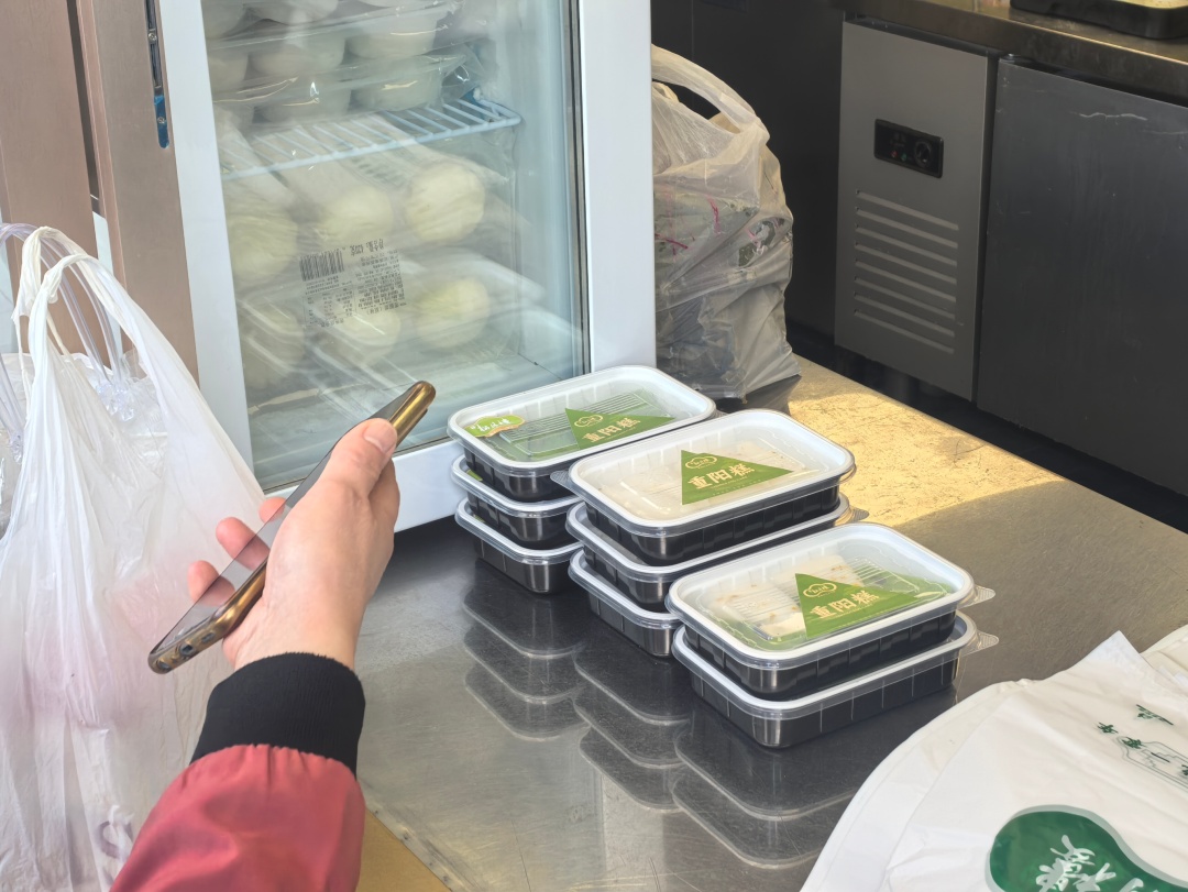 “重阳节路过城隍庙就想着到松月楼看看。一看到这重阳糕,就被它的样子吸引住了,颜色特别好看。我尝了尝味道,真的很不错,很清新。现在老品牌也在不断创新,推出了很多新的口味和样式。我买点回去给长辈尝尝,他们肯定也会喜欢。感觉松月楼现在变化挺大的,重阳糕做得既保留了传统,又有了新的亮点。”市民戎先生告诉记者。
