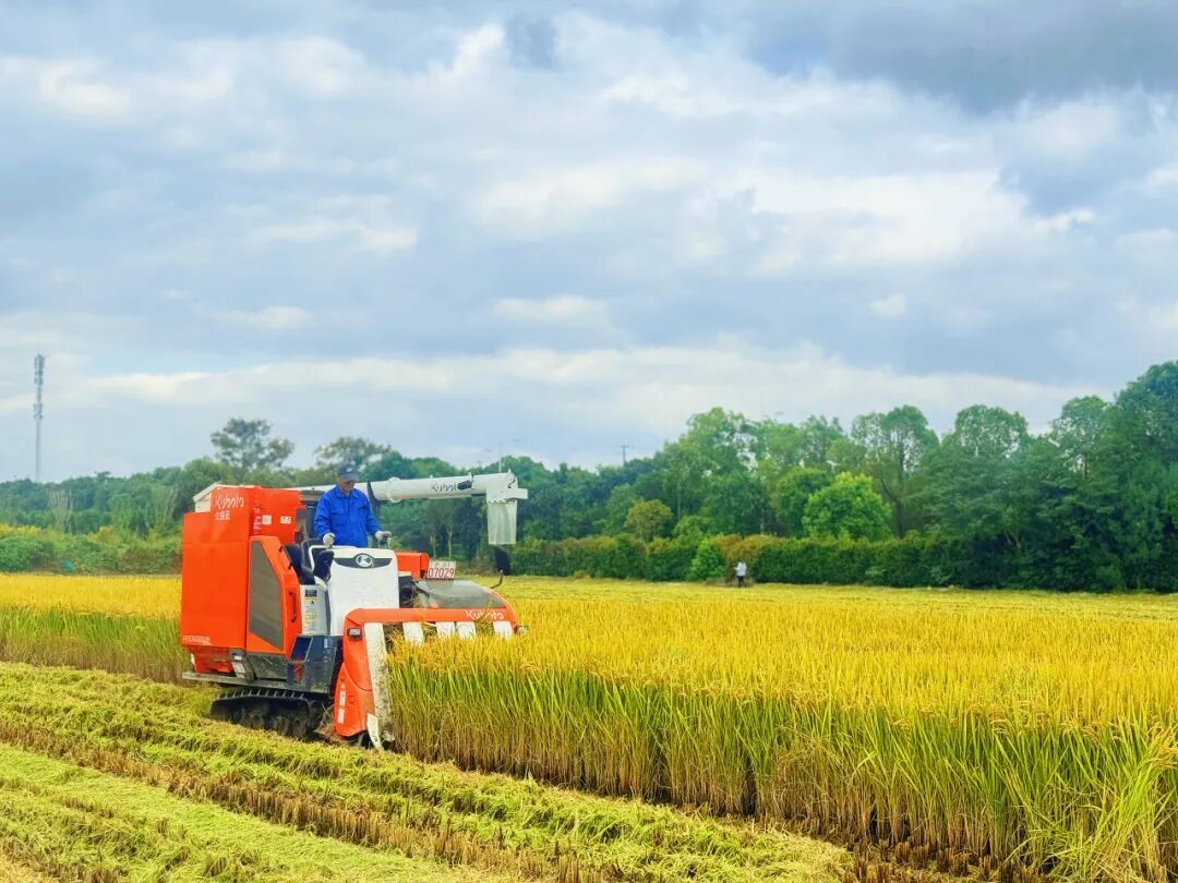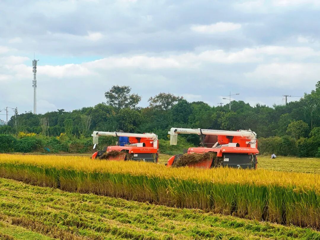 当秋风拂过稻尖,大地便铺开了金色的诗篇。那些低垂的稻穗,是时光写给勤劳的情书,每一粒谷实里,都藏着一个丰盈的人间。 漫步田间,稻香如雾般漫上衣襟。这香气不张扬,却让整片田野都浸透了温柔。从秧苗初绽的青绿,到晴空映稻的碧蓝,再到如今满目流金——这是宝山罗店的田野写就的三行诗,简短,却饱满如穗。 听——收割机的轰鸣惊起了雀鸟,也唤醒了沉睡的土地。它们如灵巧的金甲虫,在田垄间游走、转身,将收割、脱粒、吐粮谱成秋日的协奏曲。田埂上驻足的人们,眼里映着同样的金光,已经开始轻声询问:“这新米,何时能尝?” 更远处,一场静默的变革正在发生。无人农机沿着北斗指引的路径从容行进,像大地的绣娘,以稻浪为布,织出精准的纹样。从“面朝黄土”到“指尖轻点”,从镐锄镰犁到智慧铁马——种地,正成为一门充满想象的艺术。 在这丰收的季节里,罗店的农人们将汗水化作大地的韵脚。他们守护着1794亩稻田,从传统稻作到旱稻试种,从标准化生产到品牌培育,每一步都走得扎实而轻盈。 为确保秋收工作顺利完成,镇农副公司合理制定秋收工作计划,明确目标,落实责任,压茬推进,深入作业一线检查指导秋收、秋种的进度和质量,农机手们也将按照作业要求,在减少收割损失的基础上,全力加快收获进度。预计罗店镇晚稻收割将会持续到11月上旬,11月中旬大规模上市。