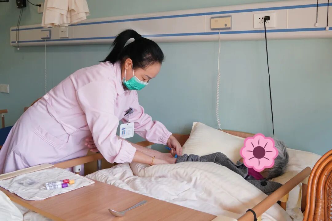 此外,对于行动不便的高龄老人,医护人员更是将服务送到床前,在床旁为他们完成抽血项目。91岁的朱阿婆躺在床上,看着细心操作的医护人员,连连称赞:“这些妹妹们对我们太好啦,很贴心,住在这里感到非常安心!”