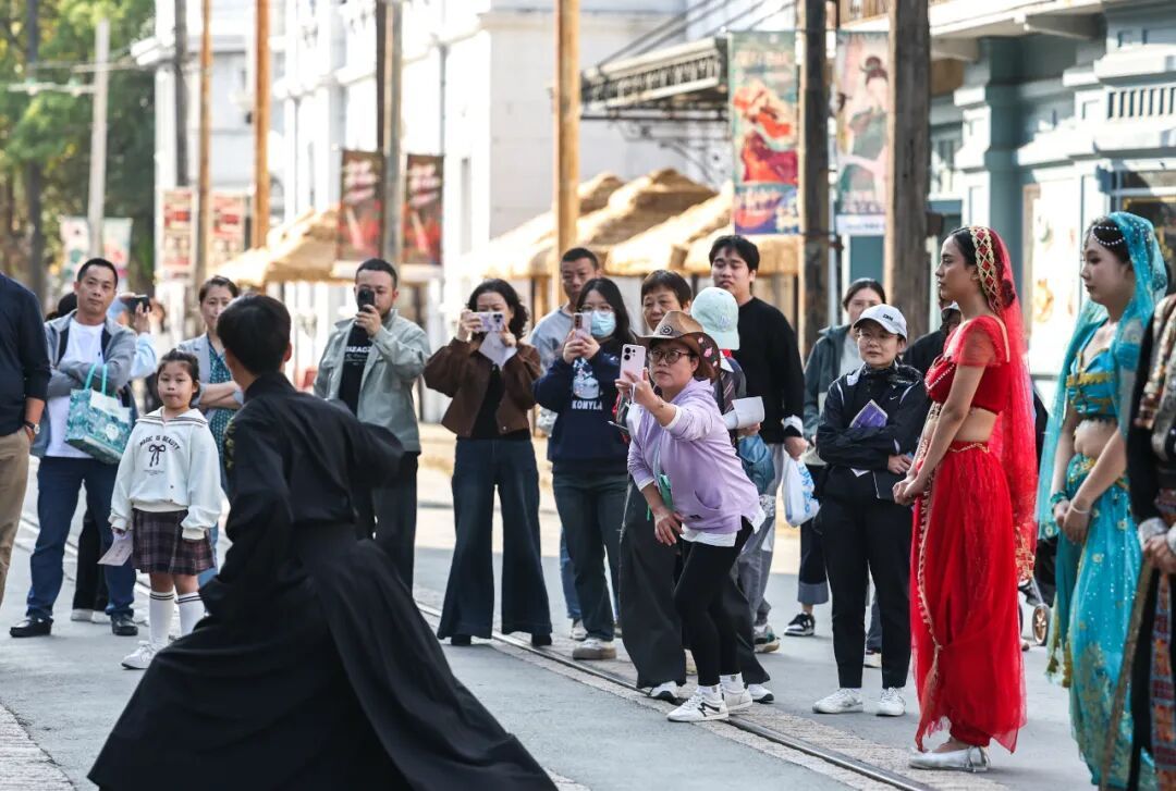 10月25日,上海影视乐园迎来周末客流高峰,市民游客穿梭于老上海风情的街巷中,沉浸式体验影视IP带来的独特魅力。作为《繁花》《南京照相馆》等热门影视作品的拍摄地,乐园通过实景还原、互动剧场和光影艺术打造出“电影即生活”的文旅新场景。