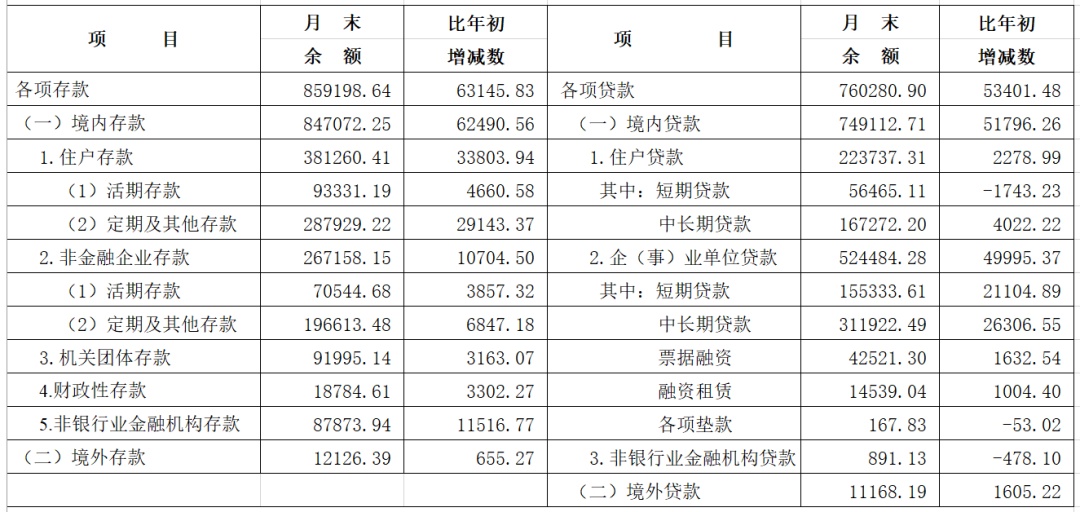 9月末,长三角地区本外币各项贷款余额76.03万亿元,同比增长8.6%,增速较上月末低0.1个百分点;人民币贷款余额75.14万亿元,同比增长8.7%,增速比上月末低0.2个百分点;外币贷款余额1249亿美元,同比下降1.9%,增速比上月末高4.4个百分点。
