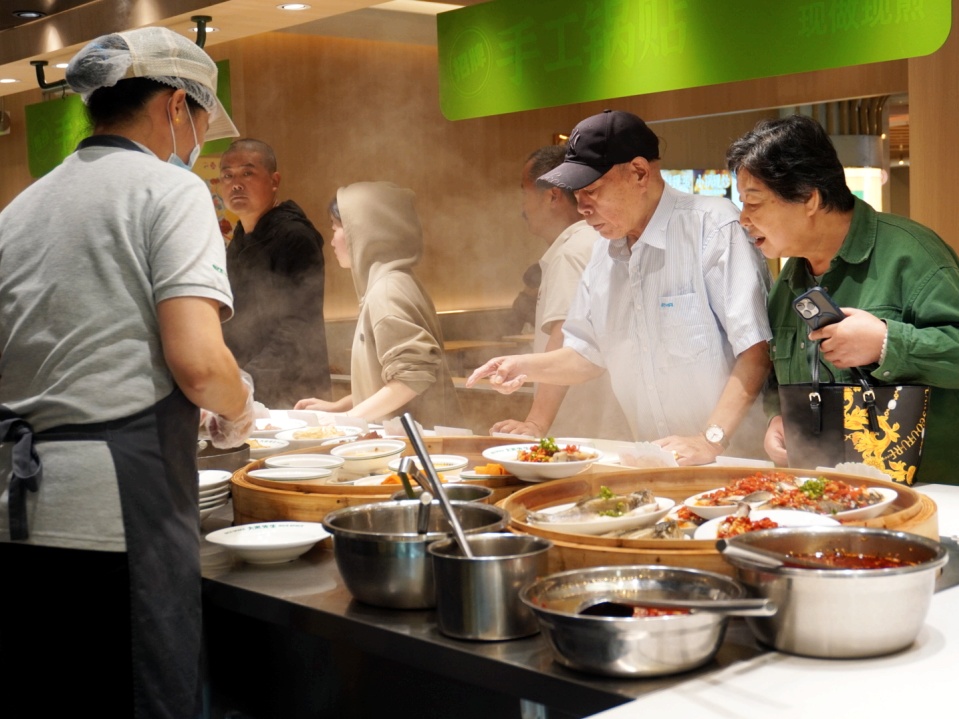 位于博荟广场内的大米先生门店,店内服务细致入微,店员会贴心询问“这道菜有点辣,您能吃吗?”,并在结账时贴心提醒出示助老服务卡。经常来此光顾的唐阿婆笑着说:“年纪大了,在家做饭少,这里口味合适、价格实惠,吃完慢慢散步回家,真的很舒服。”