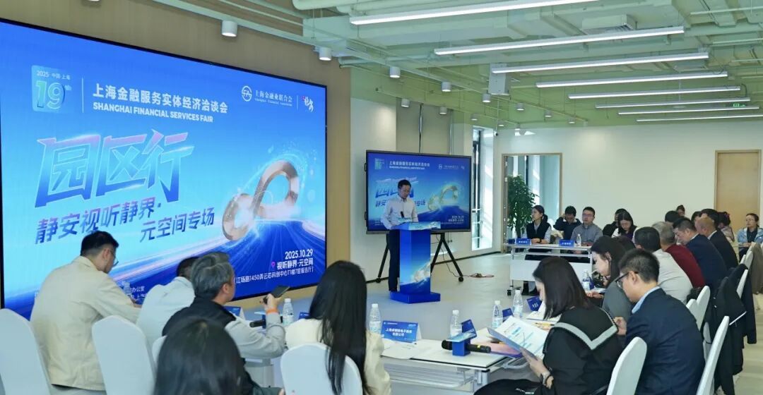 为持续推动金融资源与重点产业深度融合,精准赋能区域特色产业集群高质量发展,10月29日,由市委金融办指导,上海金融业联合会、区投资办联合主办,浦发银行上海分行、“视听静界–元空间”、上海国展集团共同承办的上海金融服务实体经济洽谈会“园区行”系列活动,在静安区“视听静界–元空间”举办。本次活动聚焦超高清视听产业,通过政策解读、服务宣介、资源对接与“现场问诊”等多种形式,为园区内近20家企业搭建了与政府部门、金融机构直面沟通的“政策—服务—资源”三维对接平台。