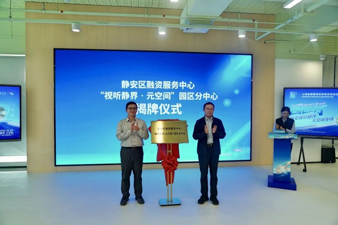 作为静安“一园区一特色金融服务方案”的关键落子,活动现场举行了静安区融资服务中心 “视听静界–元空间”分中心、“视听静界–元空间”普惠金融顾问咨询室揭牌仪式。这是继 “数通链谷”“美创静界” 之后,静安在特色园区布局普惠金融实体阵地的又一重要举措,标志着区域 “枢纽(区级普惠金融服务枢纽)+中心(融资服务中心)+顾问室(园区专属普惠顾问咨询室)”三级服务网络进一步完善,常态化、阵地化的金融服务进一步向园区和企业延伸,未来将为“视听静界”超高清视听企业提供更加便捷、高效的综合性金融服务支持,切实缓解“融资何处寻”“顾问哪里找”的问题。