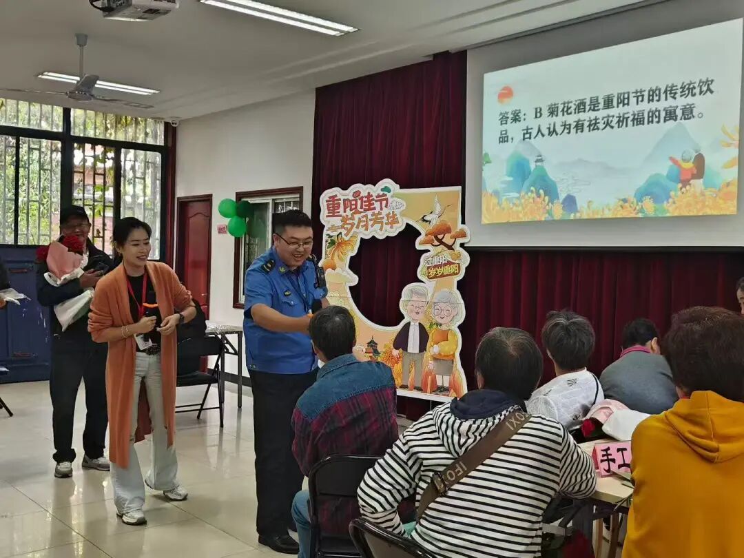 不同于传统敬老活动“单向送福利”的模式,静安城管这次玩出了新花样——用一张集星卡串起整场互动。手工花束DIY环节,老人们跟着步骤折康乃馨,邵芳泽会悄悄递上防滑剪刀,顺手在卡片上贴颗“巧手星”;重阳知识问答时,从“重阳节为啥要插茱萸”到“社区里哪些行为算违规”,只要答得上来,就能收获“智慧星”;最热闹的投壶游戏更不用提,哪怕老人只投中一支箭,邵芳泽也会笑着贴上“幸运星”。